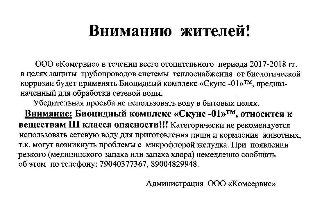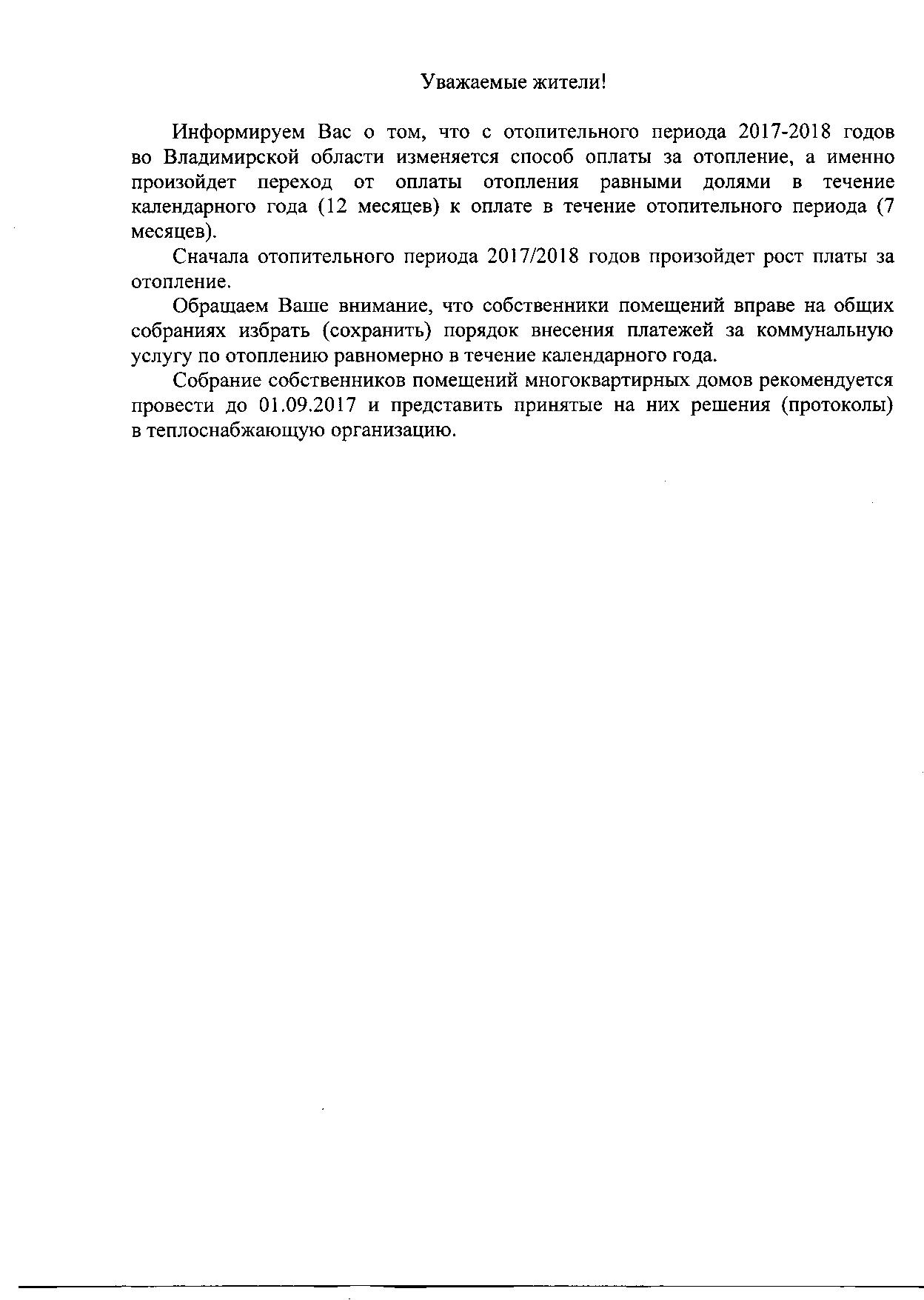 - Объявление для населения о корректировке по отоплению