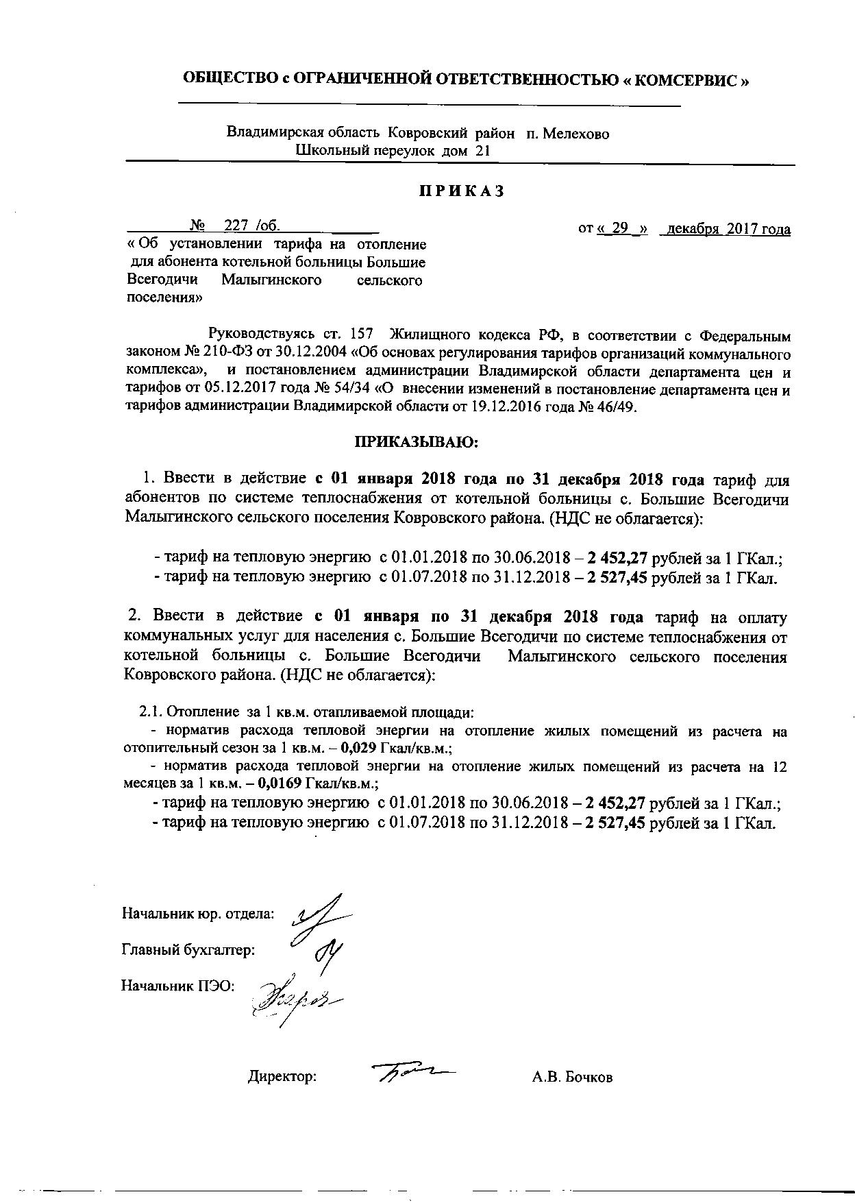 - Приказ по отоплению населения и абонентов больницы Б. Всегодичи